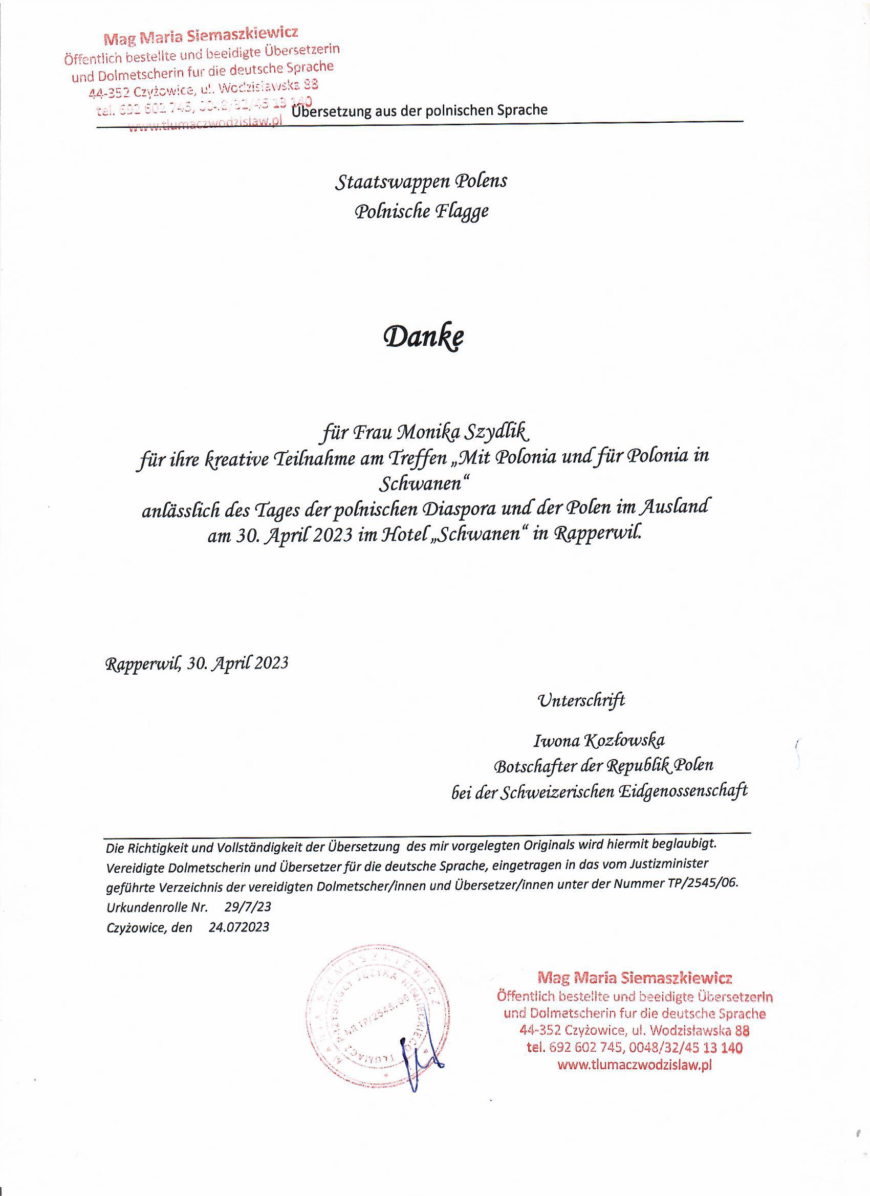- Konzert für Polnische Botschaft in der Schweiz